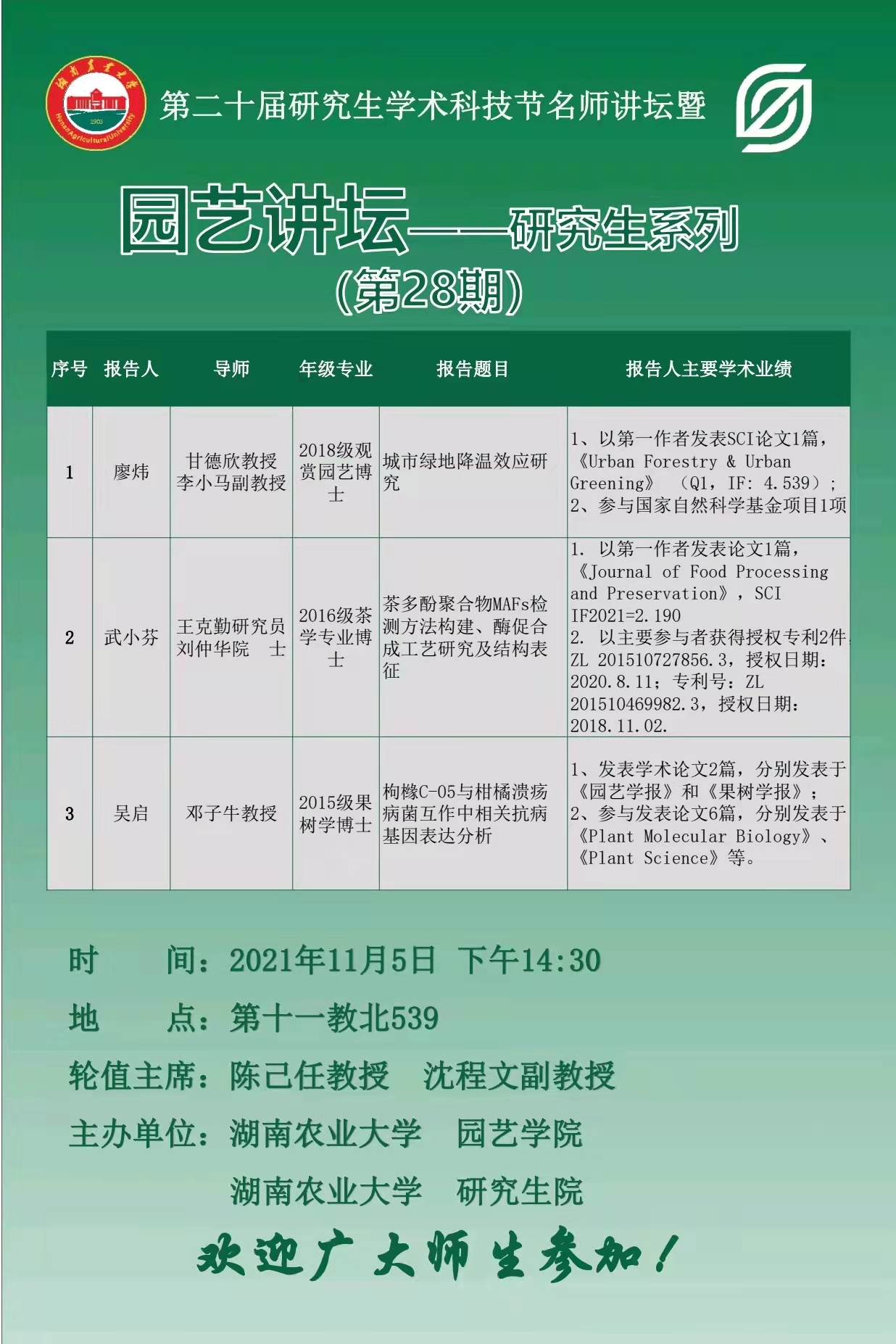园艺讲坛——研究生系列(第28期)